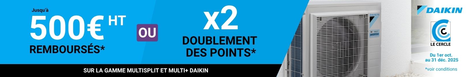 Daikin : Jusqu'à 500€HT remboursés ou le doublement de vos points !